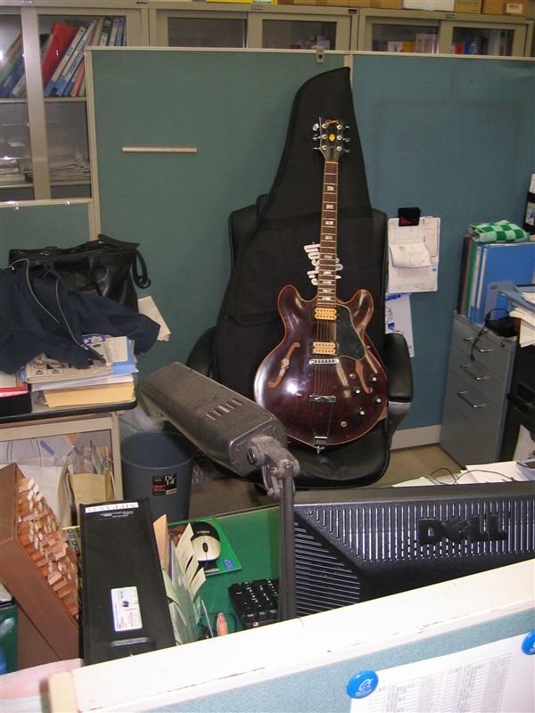 先週の深夜リハ後、そのまま出勤して会社へ置きっ放しだったES335を本日持って帰る。