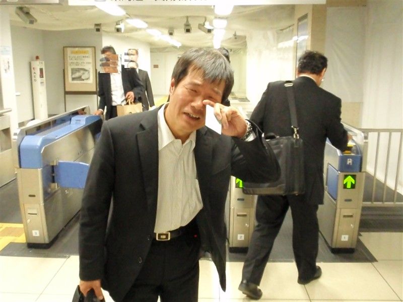 そして、東京駅の新幹線改札口を背に、別れを惜しみむせび泣く男。
