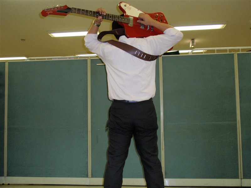 ギターを背面に抱えた瞬間に、左手をフレットから離してしまうと悲惨な結末が訪れる。