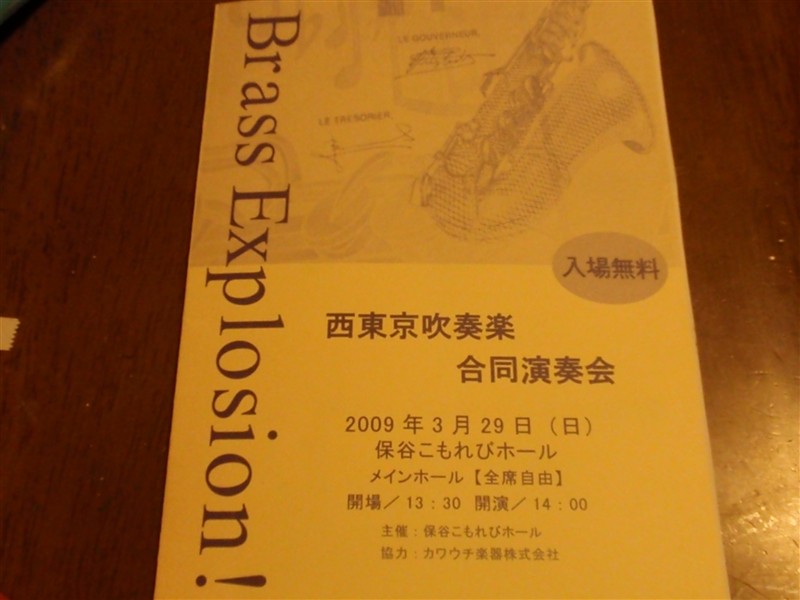 娘の入っているH中学とT二中の吹奏楽部が出演である。そして、市内の都立H高校のOBで作る吹奏楽団がゲスト。