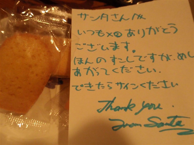 そして、昨年同様、次女の枕元にはサンタさんを労う手紙とお菓子が。