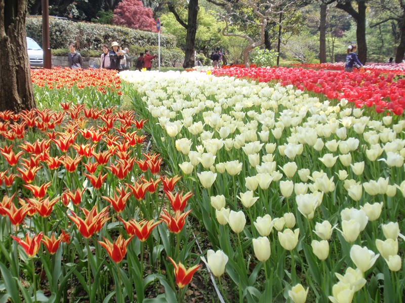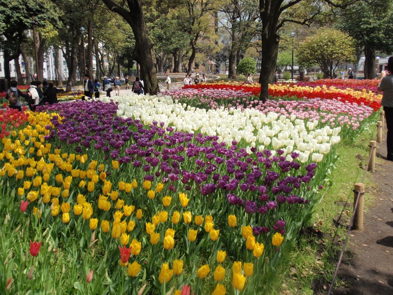 関内で降り、途中の横浜スタジアムの敷地内はチューリップの嵐。