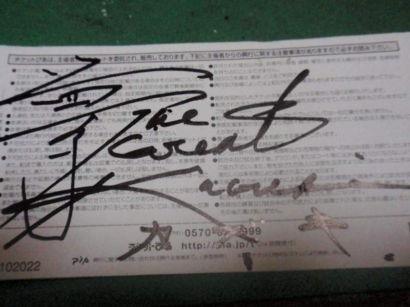 グレート・カブキさんに券を10枚お願いしていただいた。