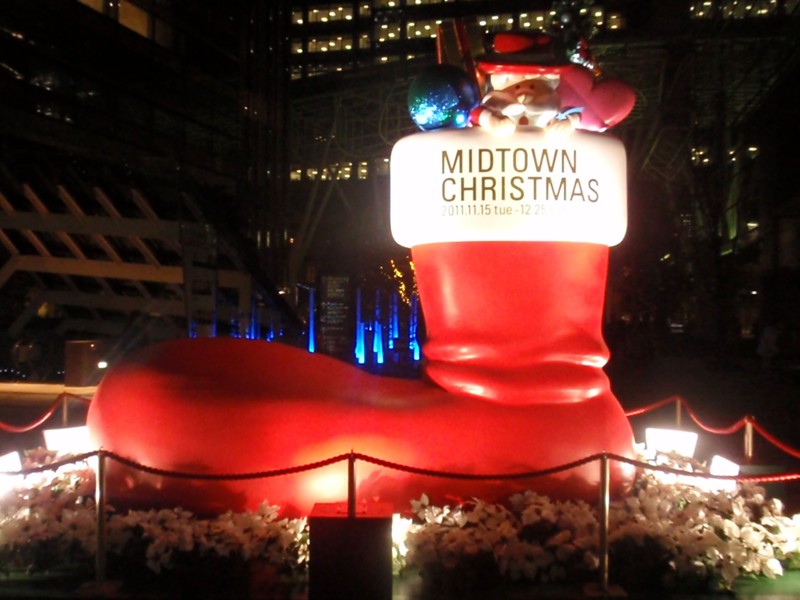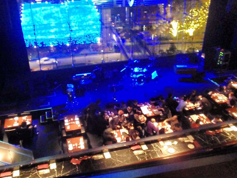 開演前はステージバックの黒いカーテンが開いているので、外のライトアップが美しい。