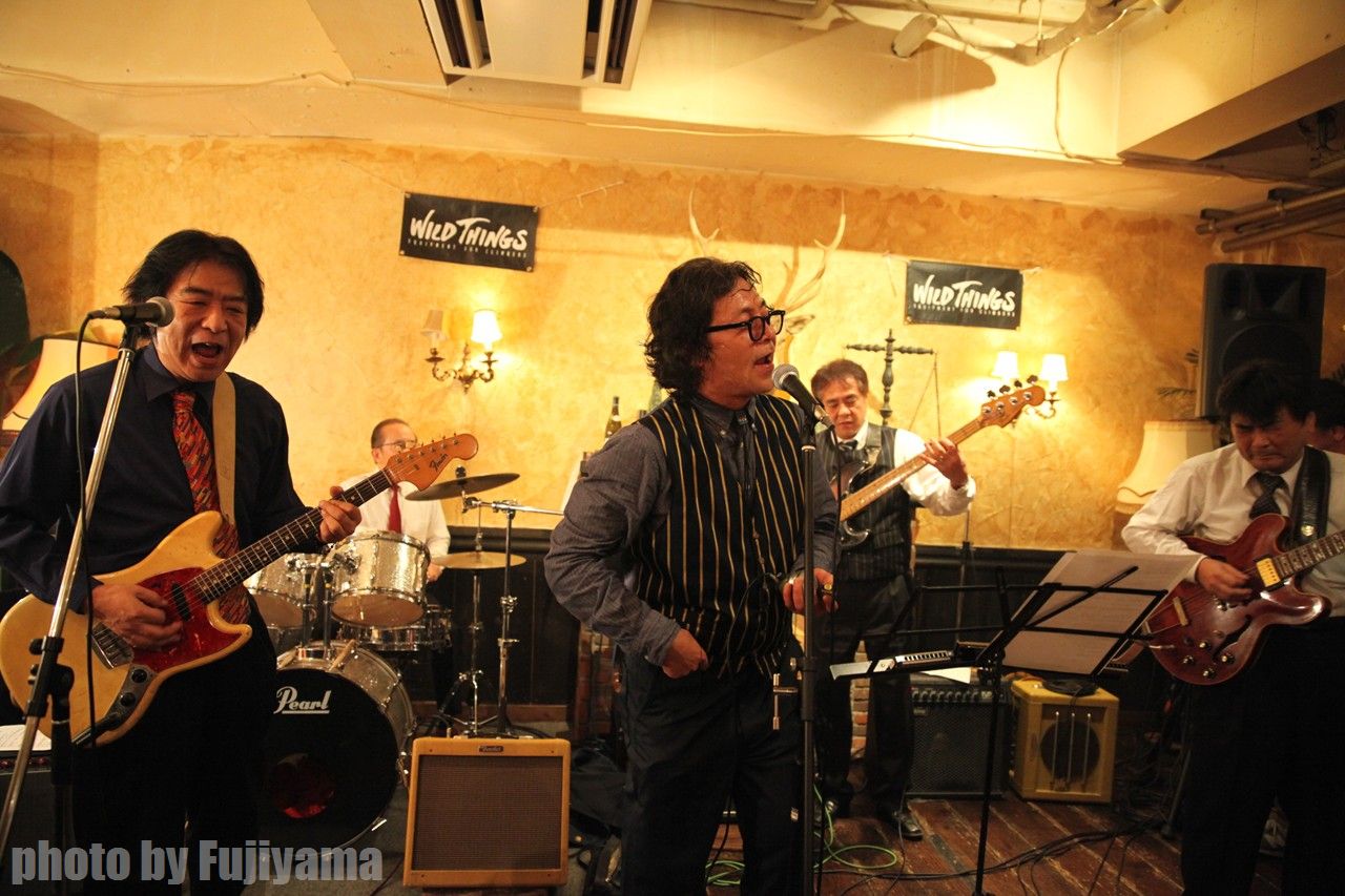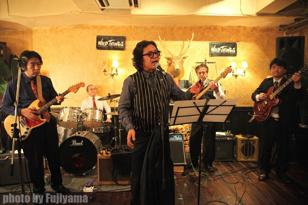 左から敬称略で、高村セクスィー和俊、吾妻光良、立松裕之、柴田摂子、田波庸夫。