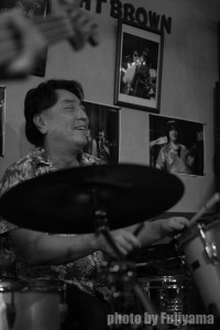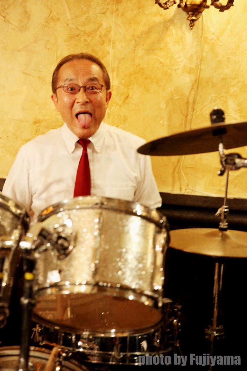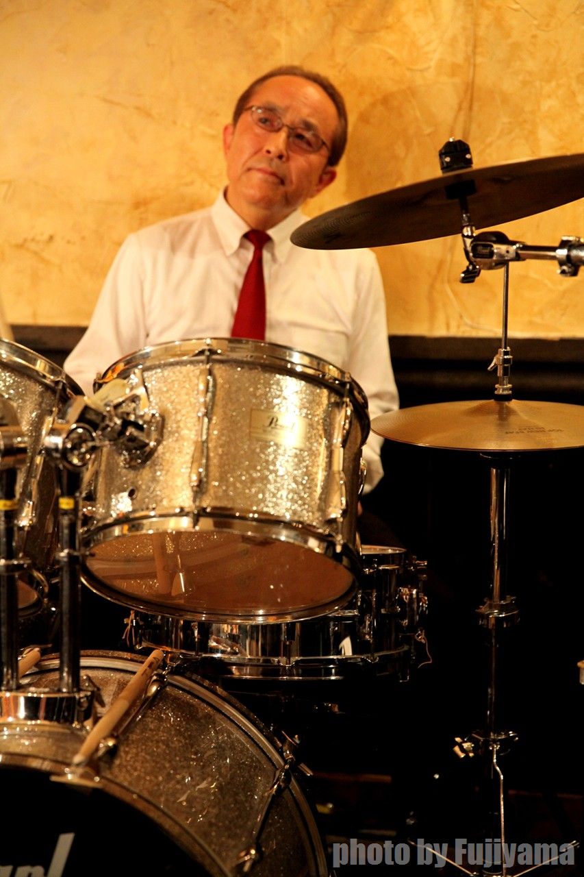 吾妻トリオ+1などでパーカス姿は良く見られていますが、ドラム姿はなかなか拝めませんので(笑)