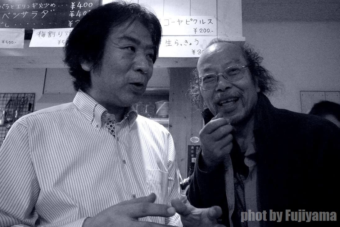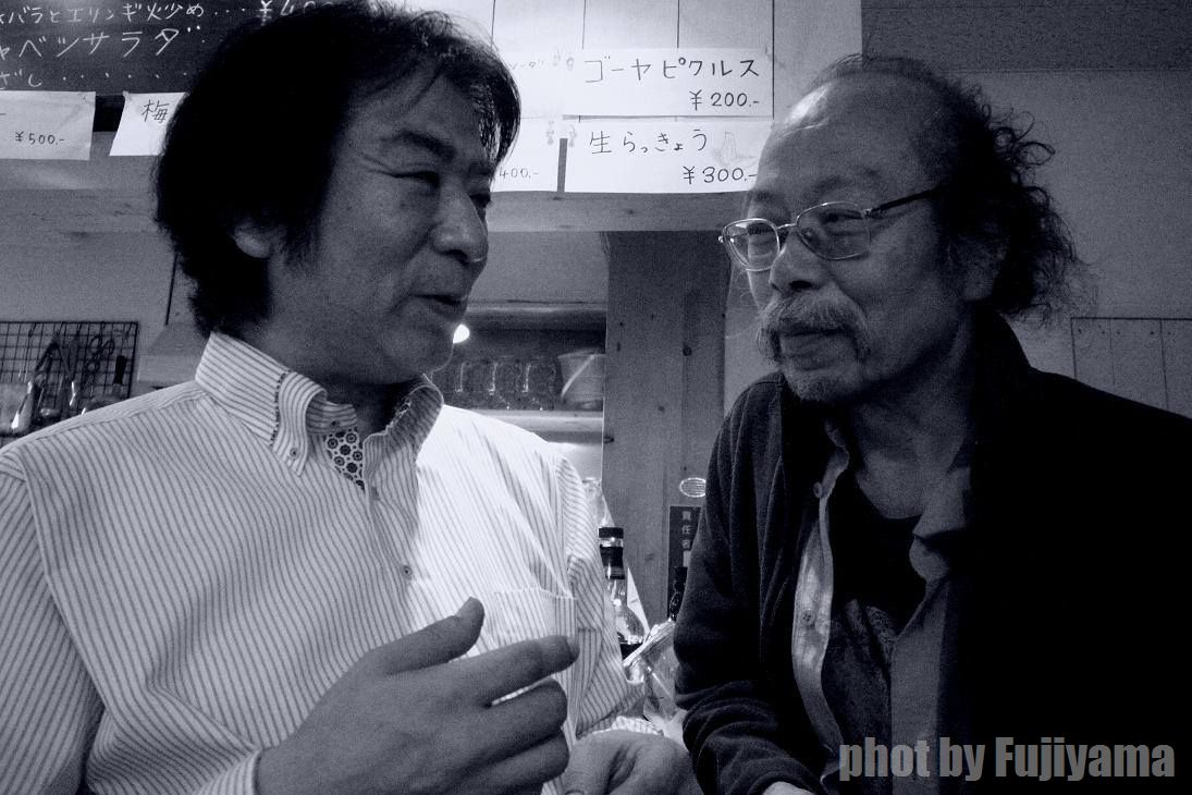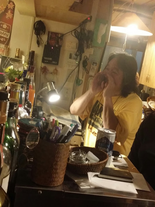 ドアが開いていたので入ると、お客さんも引けたので椅子にひっくり返って寝ている店主加藤さんを叩き起こす((笑))