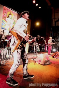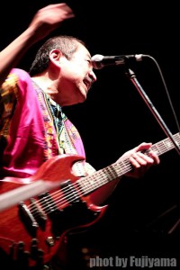 サイケな衣装。ジミヘンを狙ったものの「アイヌ居酒屋店長」の風体と化してしまったとの自らの評価。
