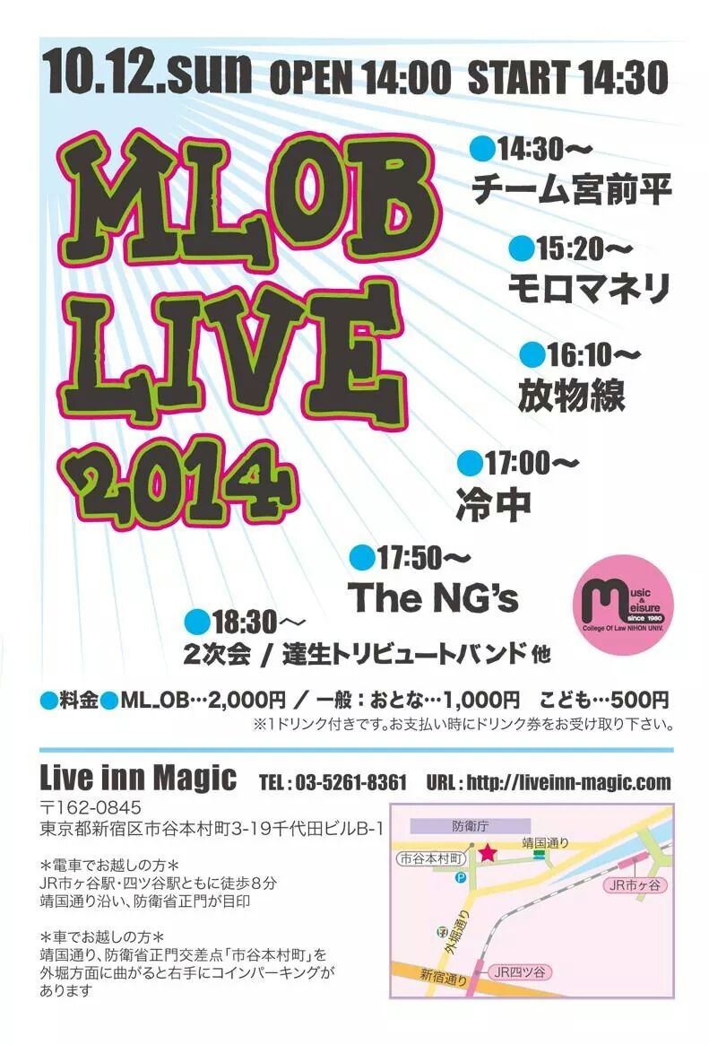 昨年もありましたが、ベースの大江選手が大学時代に発足した「日大 MUSIC & LEISURE」というサークルのOBライブです。