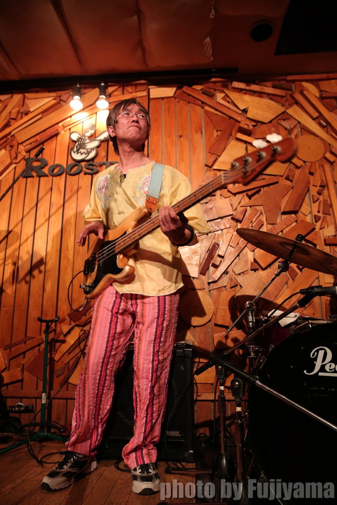 ふだんは縁の下の力持ちということで、黙々と呑んで、い、いや黙々とベースを弾いていますが、このバンドではそれは許されません!