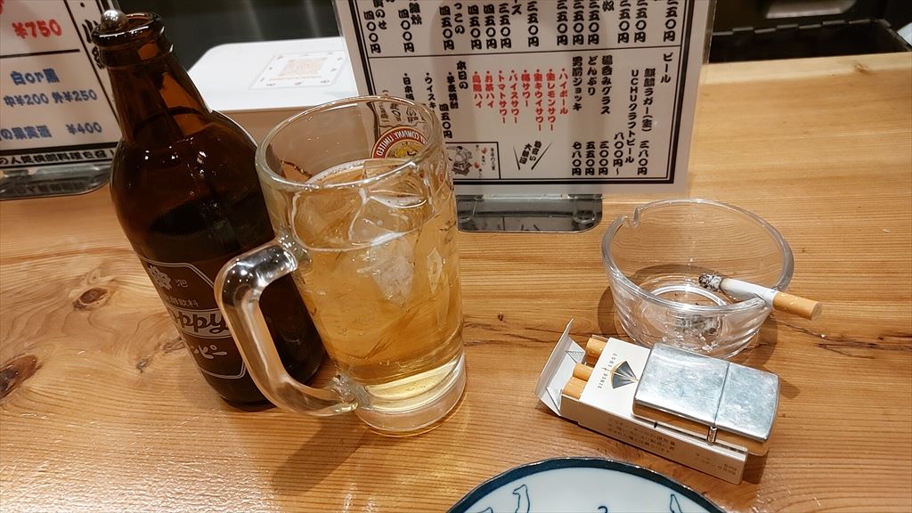 ホッピーグラスは小さめなので、60分3杯勝負(中、追加2杯)では楽勝ペース。