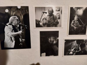 カウンターの上の方に別枠で2枚。シモキタならではのミュージシャン。