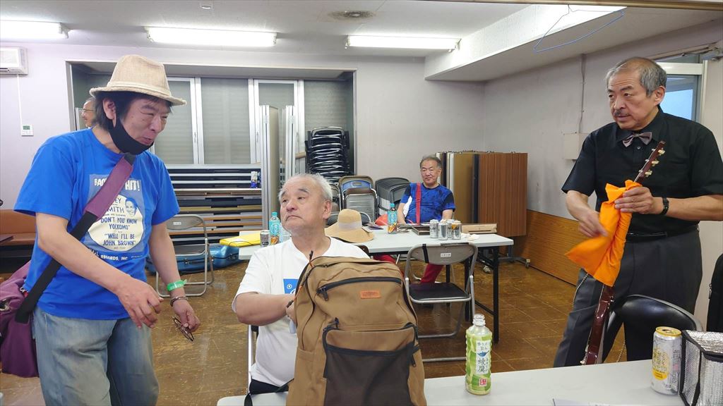 となりでギターを大事に拭く吾妻御大。