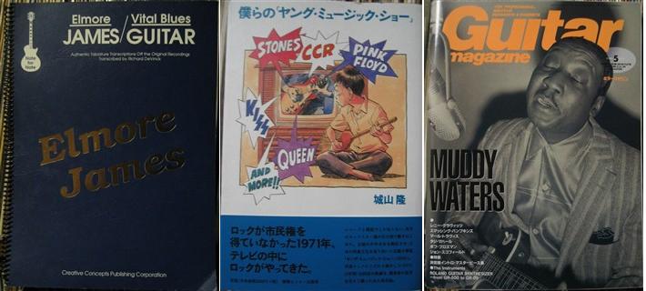 “ザ・ブルース・ブック Vol.2“、ギターマガジンの Muddy Waters特集号、筒井康隆の文庫本、泉昌之の漫画、レコードコレクターズ誌3冊、”僕らの「ヤングミュージックショー」 “、それから、なんとエルモア・ジェイムズ(Elmore James)の楽譜集。