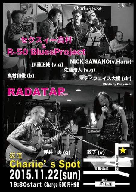 11月22日、R-50 BLUES PROJECTのライブは、先月に続き荻窪のCHARLIE’s SPOT。