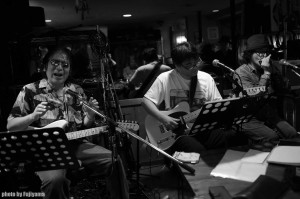 今回客席には、SWINGIN’ BOPPERSの早崎さん、ROLLER COASTERの小町さん、ブルースを捨てたドラマー立松さん、という具合に、おい!客席の方がいい演奏するんじゃないか!?てな具合の顔ぶれ(笑)